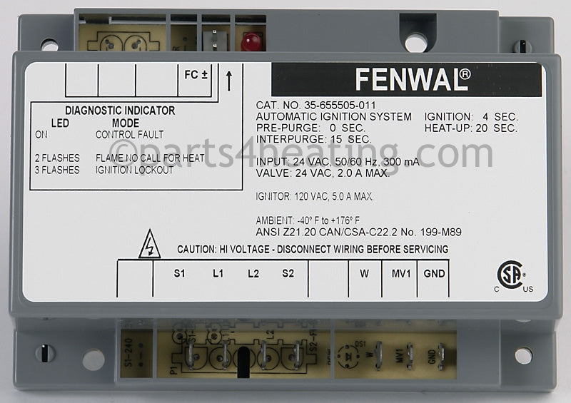 Fenwal Controls Inc. Ignition Control 24 Vac Hot Surface Ce/Csa - Part Number: 35-655006-011