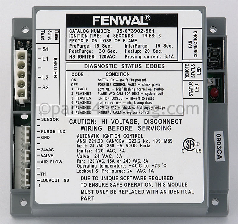 Fenwal Controls Inc. Ignition Control 24 Vac Proven Hsi W/Blower Relay - Part Number: 35-673902-561